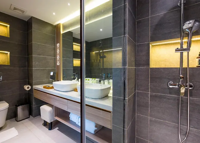 Badezimmer im La Vogue Boutique Hotel & Casino sind mit einer getrennten Toilette und einer Dusche ausgestattet.
